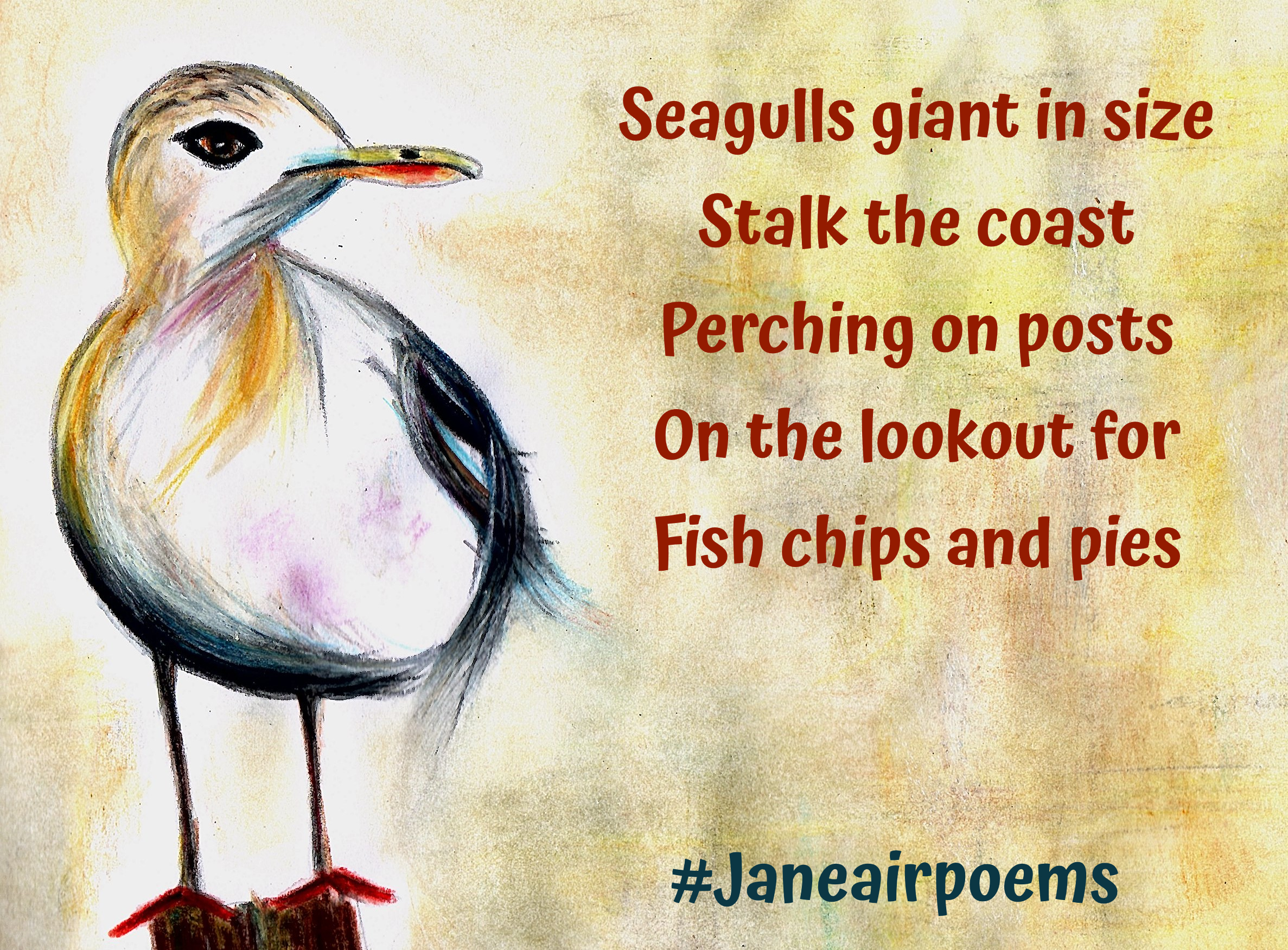 Seagull watercolour online poster for my poem, The Fog on the Humber which will be posted on my website when finished.